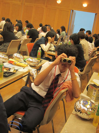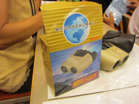 副賞としていただいた双眼鏡の前で。結構高価な品でした