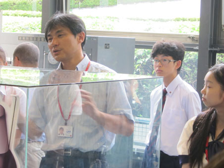 ロケットや人工衛星についての詳しい解説を受けます。