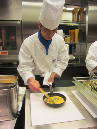 オムレツは目の前で焼いてくれます。