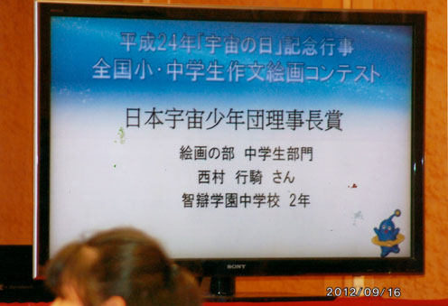 中学生の部で、本部の東京に送られ西村行騎君が(財)日本宇宙少年団理事長賞