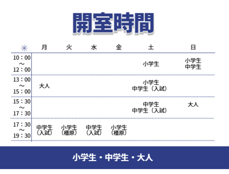 ※中学生は全員桜井教室です。