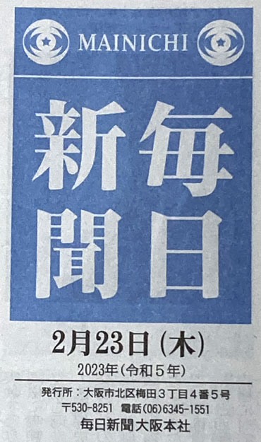 2023年2月16日の毎日新聞朝刊です。