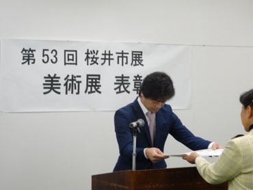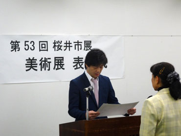 桜井市青年商工会議所の方が表彰状の全文を読み上げてくださいました。 |