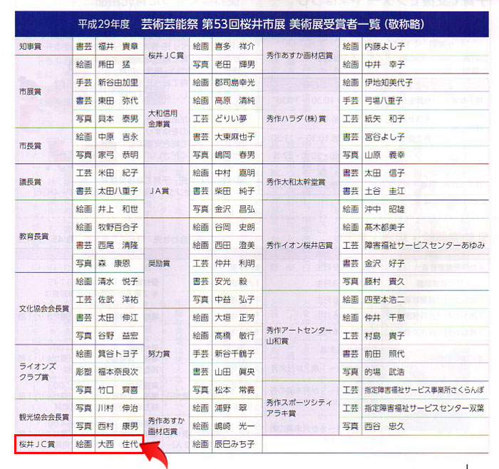 桜井JC(桜井青年商工会議所)賞・・・大西住代