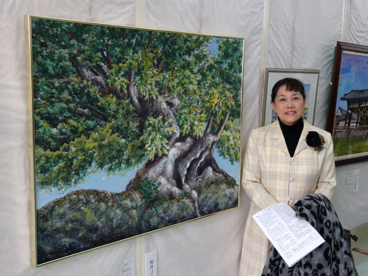 作品題名:息吹(F50号)と受賞を喜ぶ大西住代さん |