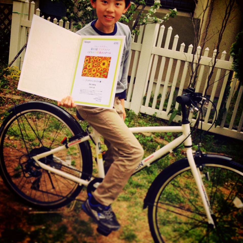 ブリジストンサイクル賞を赤松佳依君が受賞しました。ブリジストンの高級自転車がもらえます。