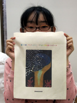 またエコ絵画賞として応募作品を個別にプリントしたオリジナルエコバッグが5名に贈られることになりました。