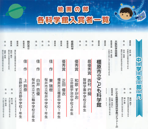 中学生の部で、本部の東京に送られ西村行騎君が(財)日本宇宙少年団理事長賞